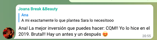 CQM me ayudó a empezar de cero, definir bien mi marca, valores, documentar procesos, cómo crear una verdadera experiencia de cliente y me ha enseñado lo que nadie te enseña: trabajar planificada y con objetivos claros, de forma fácil y sencilla.