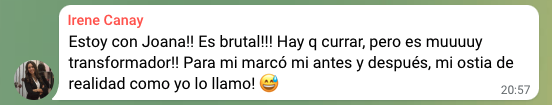 "Lo recomiendo sin ninguna duda, pero sobre todo a las que de verdad están dispuestas a hacer cambios, a no ponerse límites"