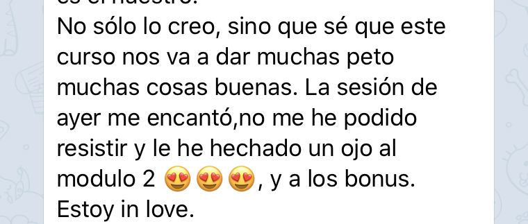 Recomendaría este curso porque estoy segura de que a toda la que desee cambios, se los reportará desde el día 1.